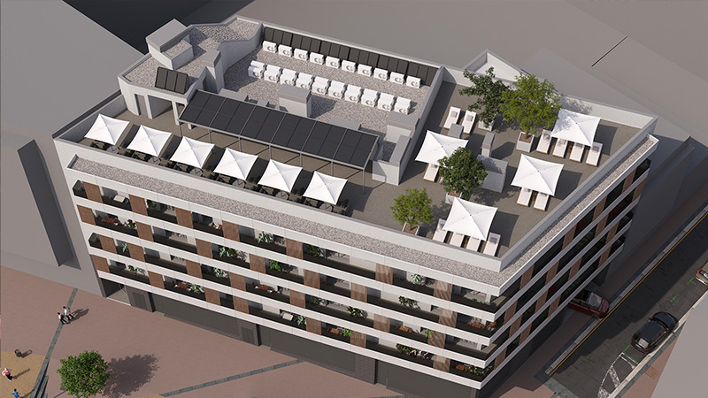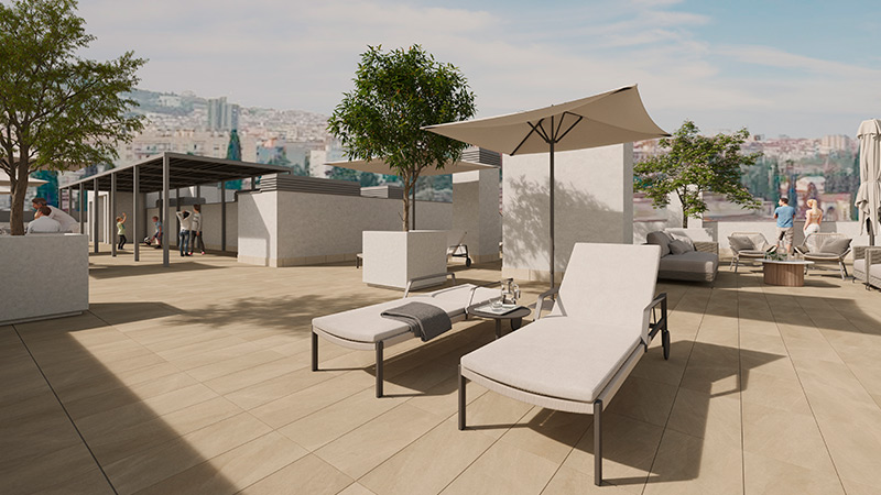 Su ubicación, la calidad de los materiales y acabados, la posibilidad de personalización y las cuidadas zonas comunes con un espacio solárium en la cubierta para disfrutar en familia del clima de la ciudad, hacen de Edificio Can Dragó una promoción exclusiva.